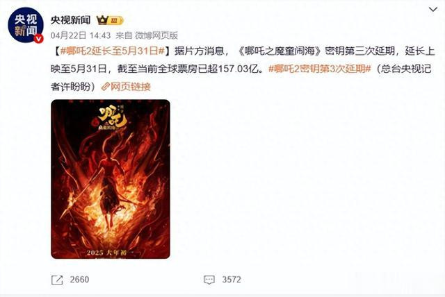 近期,《哪吒2》第三次密钥延期的消息冲上热搜,截至4月27日,《哪吒之魔童闹海》(以下简称《哪吒2》)上映已近三个月,却仍以日均千万票房的“长尾效应”稳居日冠宝座。第三次密钥延期至5月31日后,其全球票房突破157.03亿元,剑指《泰坦尼克号》(164.23亿)和《阿凡达:水之道》(168.25亿),有望跻身影史前三。然而,观众一边感叹“国漫还能再战五百年”,一边吐槽“看腻了,新片呢?这场票房狂欢的背后,明显藏着电影市场的热闹与尴尬。
